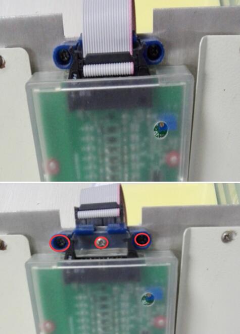 打开阅读机前盖,松开主板连接线,用十字起拧松光电传感器上定位块的三个固定螺丝(螺丝不要完全拧掉)